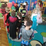 Tego dnia już od rana w przedszkolu pojawiały się kolorowe postacie. Dzieci przebrane były za bohaterów znanych bajek, w salach przedszkolnych można było spotkać wróżki, królewny, księżniczki, motylki, rycerzy, piratów, pajacyków, policjantów, Spider-Mana, Batmana, … nie sposób zliczyć i wymienić tych wszystkich postaci.
