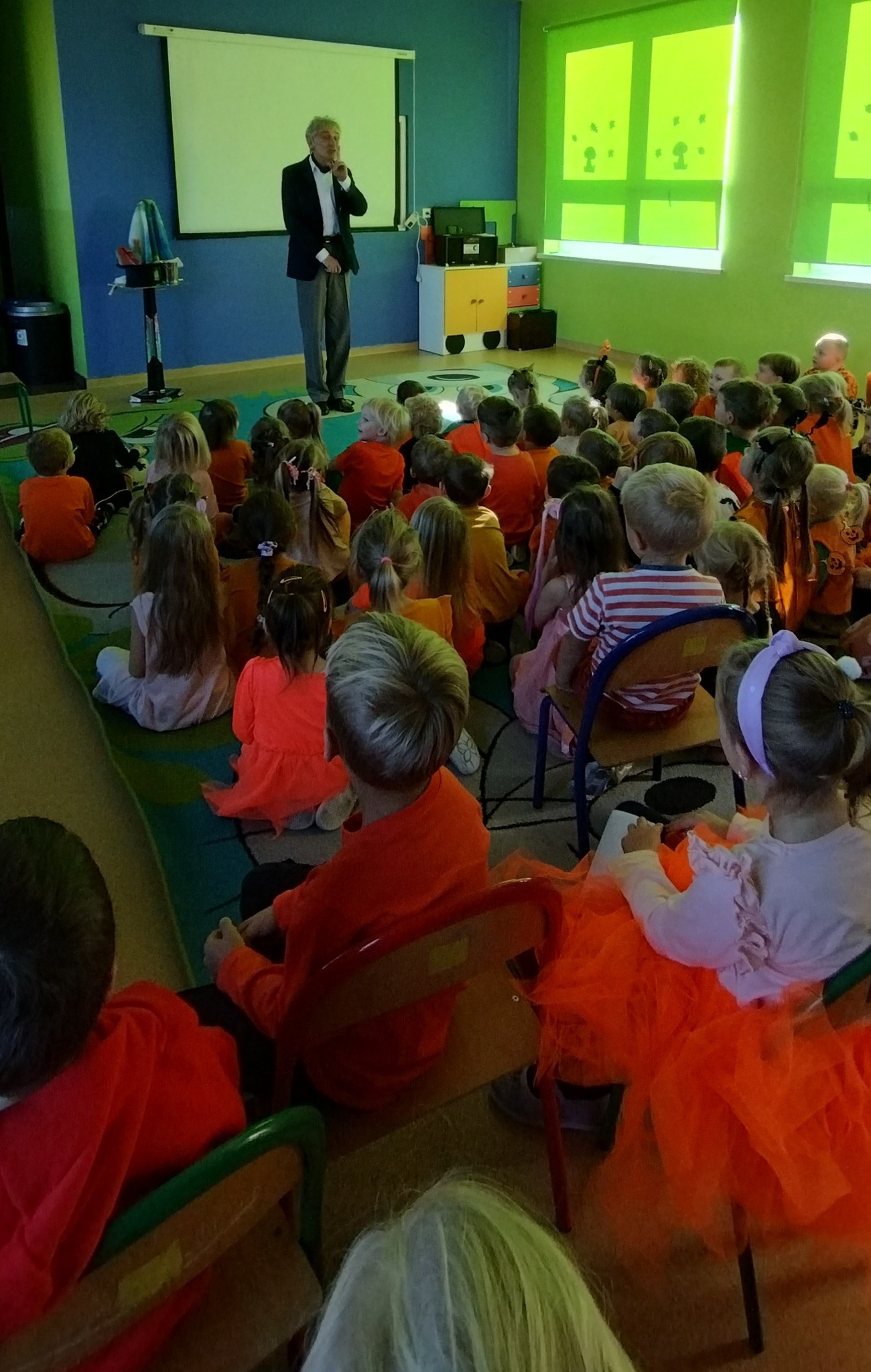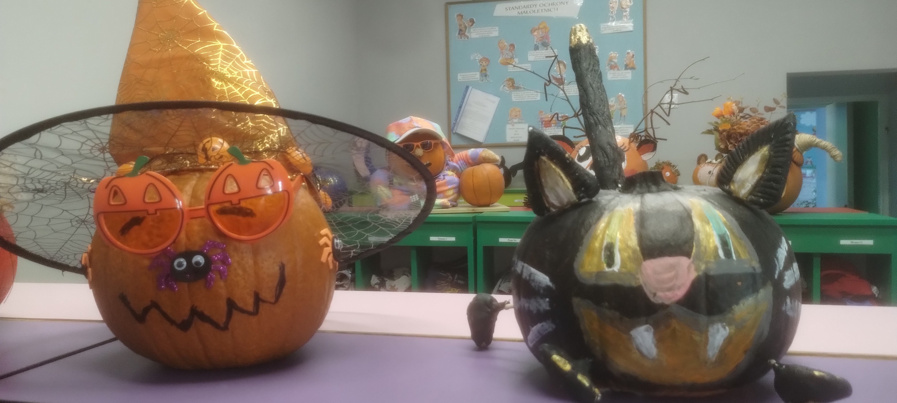 Wspólnie uczestniczyliśmy w zajęciach, podczas których poznaliśmy bardzo zdrowe i urodziwe warzywo jakim jest dynia. Dzieci przyniosły do przedszkola dynie i ubrały się na kolor pomarańczowy. „Dzień Dyni” pozwolił nam poznać wielką różnorodność dyń i wzbogacił naszą wiedzę na ich temat. Wzięliśmy udział w licznych zabawach z udziałem dyni: dyniowe kręgle, slalom dyniowy, dyniowe zawody, skoki przez dynię oraz ziarnko do ziarnka. Dzieci wykonały również piękne prace plastyczne.
