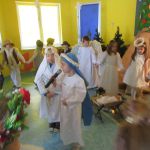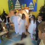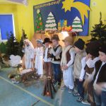 W naszym przedszkolu już od wielu lat kultywowana jest tradycja Bożonarodzeniowa poświęcona jasełkom. W jasełkach wzięły udział najstarsze dzieci z przedszkola „Gumisie”. Na premierę dnia 17.12. 2018 r. zaprosiliśmy rodziców. Publiczność nie zawiodła, a mali artyści stanęli na wysokości zadania. Przygotowany przez dzieci spektakl zatytułowany „Bajkowe Jasełka” miał szczególny charakter. Oprócz tradycyjnych postaci związanych z szopką betlejemską czyli Maryi i Józefa oraz pasterzy przez scenę przewijało się wiele barwnych bajkowych postaci, m.in: Dziewczynka z zapałkami, Jaś i Małgosia, Kopciuszek, Czerwony Kapturek, Calineczka, Smerf,Pinokio, Rybak ze złotą rybką. Natomiast aniołki śpiewały piękne pastorałki Jezusowi.