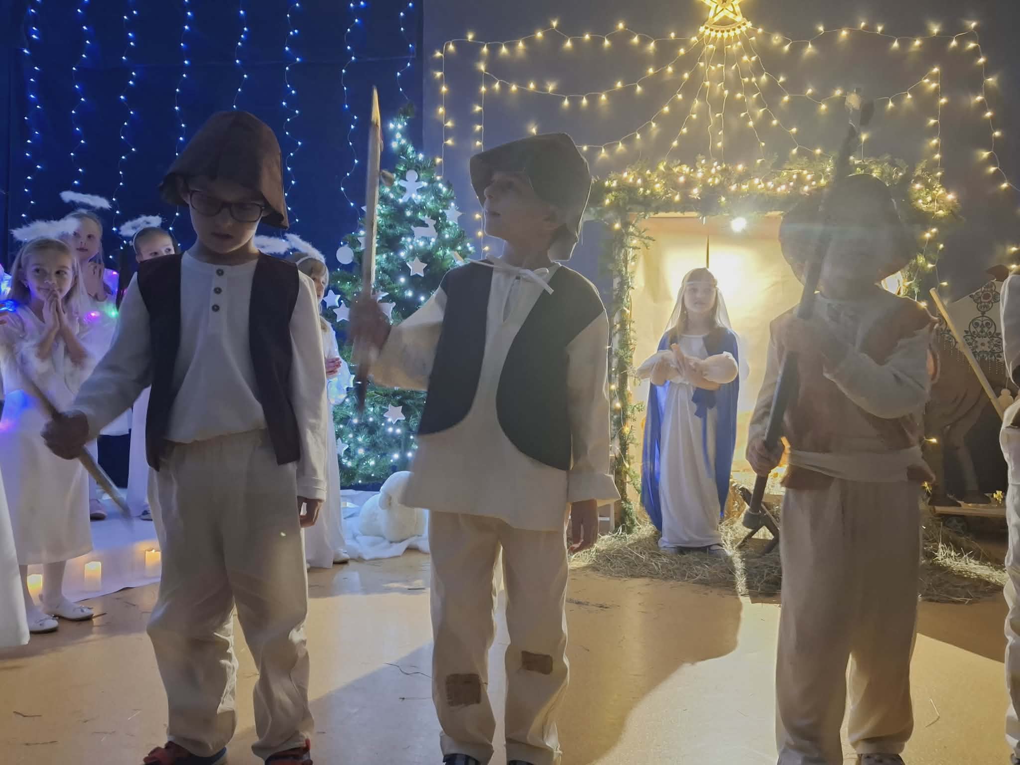 Uroczystość Jasełek od wielu lat wpisana jest do kalendarza uroczystości organizowanych w naszym przedszkolu. W tym roku również postanowiłyśmy w grupie Biedronek przeprowadzić tę uroczystość, integrując dom rodzinny i przedszkole, wprowadzając nastrój świąteczny oraz prezentując rodzicom umiejętności wokalno – recytatorskie dzieci.