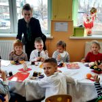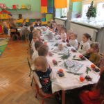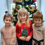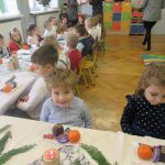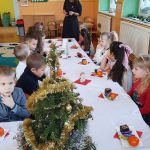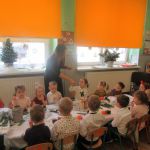 Wigilia Bożego Narodzenia to jeden z najpiękniejszych dni w roku, na który czekamy i przeżywamy go uroczyście w naszym przedszkolu. Dzieci każdego roku poznają tradycje i zwyczaje świąteczne, aktywnie uczestniczą w przygotowaniach: wykonują ozdoby świąteczne, łańcuchy choinkowe oraz stroiki. W dzień przedszkolnej Wigilii w całym przedszkolu panowała radosna, ożywiona atmosfera. Świąteczne dekoracje oraz dzieci w galowych strojach wprowadzały nastrój oczekiwania na wyjątkowe, niecodzienne wydarzenie. O wyznaczonej godzinie w sali zebrały się wszystkie dzieci, personel przedszkola oraz Pani Dyrektor, która złożyła dzieciom i pracownikom najlepsze bożonarodzeniowe życzenia. Wszyscy podzielili się opłatkiem, a następnie wspólnie zjedli przygotowany poczęstunek.