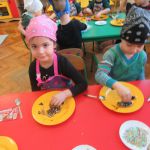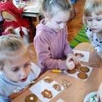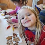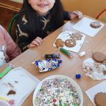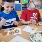 Przedświąteczny czas każdemu kojarzy się z pieczeniem i dekorowaniem pierniczków oraz wspólnym kolędowaniem. Również w naszym przedszkolu nie mogło tego zabraknąć. We wtorek 21.12.2021r zgodnie z tradycją naszego przedszkola dzieci z grup Motylki, Myszki, Pszczółki, Jagódki dekorowały świąteczne pierniczki. Na stołach pojawił się kolorowy lukier, czekolada, rysiki dekoracyjne oraz pisaki cukrowe, które pomogły nam w samodzielnym dekorowaniu pierników. Każdy wyglądał inaczej, był wyjątkowy i niepowtarzalny.
