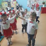Wszystkie dzieci z naszego przedszkola wraz z gronem pedagogicznym odśpiewały uroczyście Hymn Narodowy „Mazurek Dąbrowskiego”.