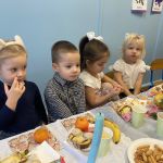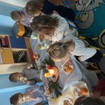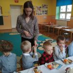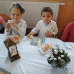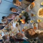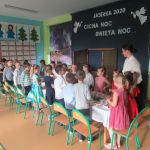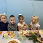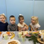 W dzień przedszkolnej Wigilii 18.12.2020r. w całym przedszkolu panowała radosna, ożywiona atmosfera. Świąteczne dekoracje w całej placówce, dzieci w galowych strojach wprowadzały nastrój oczekiwania na wyjątkowe, niecodzienne wydarzenia.